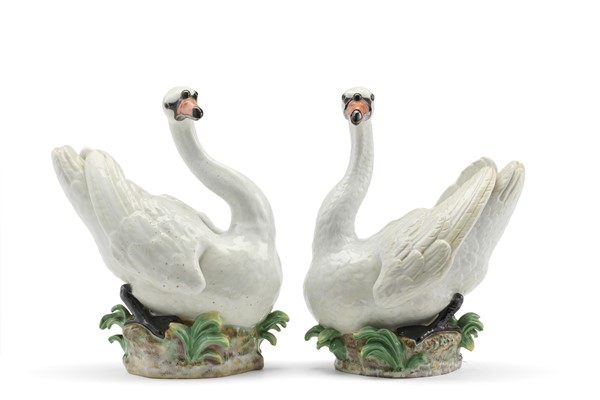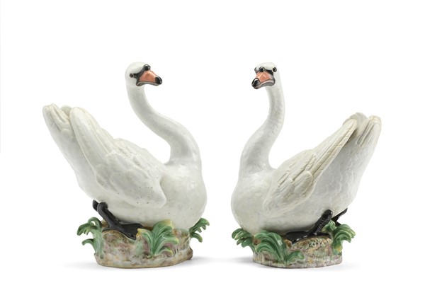 Manifattura di Meissen, secolo XIX. Da Johann Joachim Kaendler. Coppia di cigni