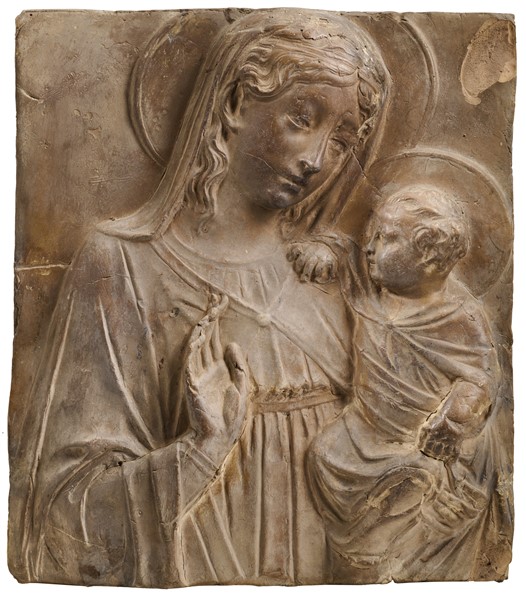 Alceo Dossena (Cremona 1878 - Roma 1937) 'Madonna col Bambino' altorilievo in t