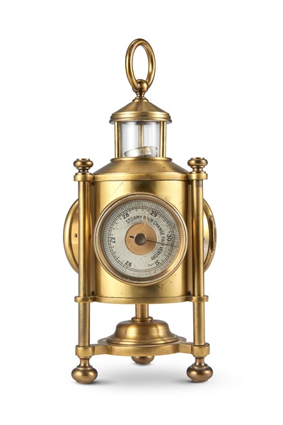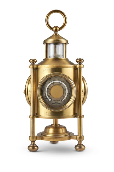 Sul corpo sono presenti tre quadranti: orologio a numeri romani con movimento ad un treno, barometro e termometro.