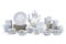 Composto da caffettiera, teiera, zuccheriera, lattiera, dodici piattini da dessert, dodici tazzine da caffè con piattino, dodici tazze da tè con piattino. Unito a una tazzina in forma di foglia