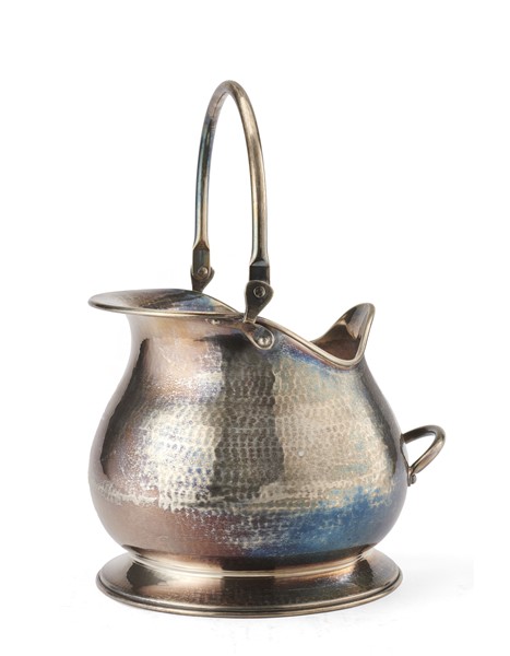 Contenitore in argento martellato a finto porta carbone. Vicenza, secolo XX (g 1200) (h. cm 23) (difetti)