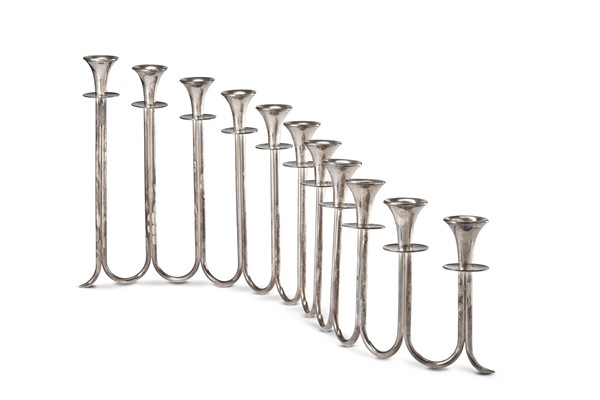 Grande portacandele centrotavola in argento a undici fiamme. Milano, argentiere
