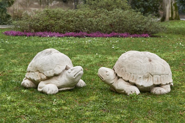Scultore del secolo XVIII/XIX. "Tartarughe", coppia di sculture in pietra (cm 55x43) (difetti e restauri)