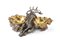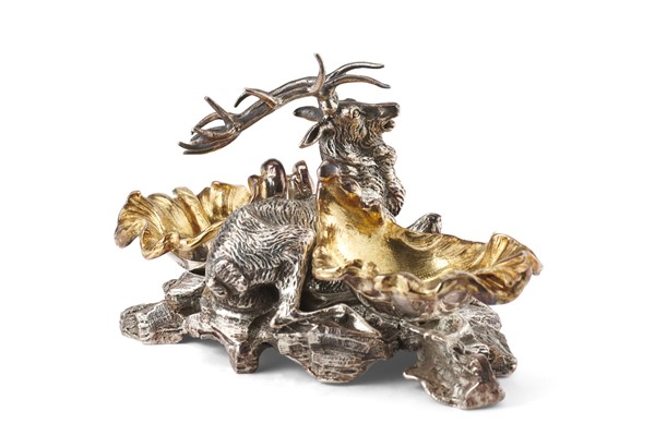 Saliera a forma di cervo in argento e argento dorato con due cucchiai (g 850) (