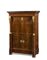 Secretaire veneered in mahogany feather with a drawer under the top, an awning that reveals a mirrored compartment, six bars and two side secrets. Lower part with two doors that reveal three drawers. Shaped upper lesenes ending in a small leg resting on columns in the round. Bronze gaskets. Black marble top. 19th century (cm 100x145x41) (defects)