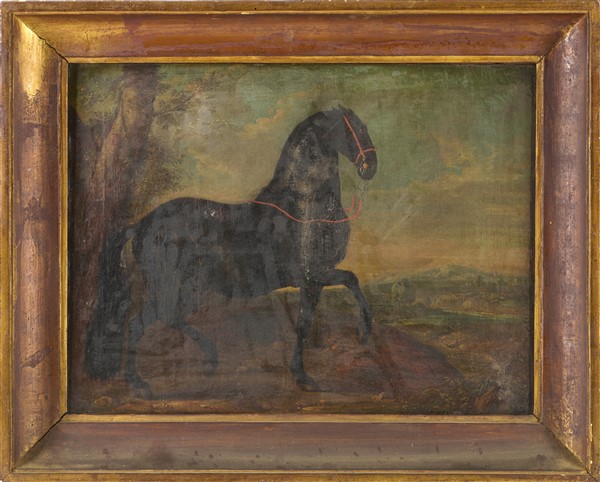 Coppia di dipinti ad olio su tela raffiguranti "Cavalli"