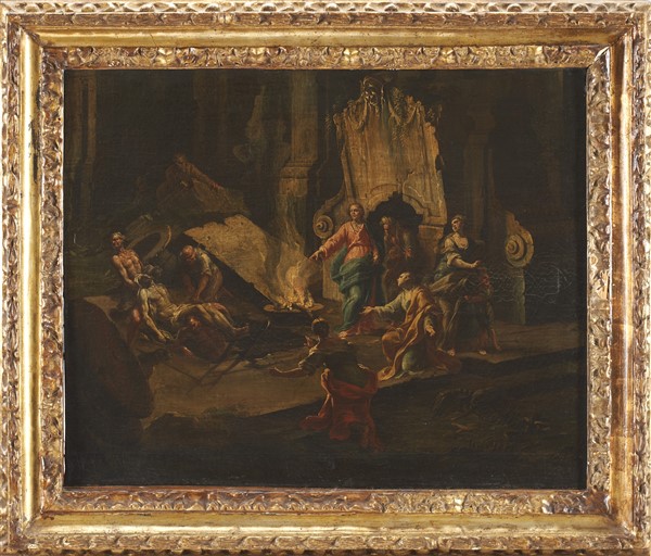 Scuola napoletana del secolo XVIII "Resurrezione di Lazzaro"olio su tela (cm