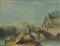 Giuseppe Zola (attr.)"Veduta con ponte e viandanti"olio su tela (cm 86x116)i