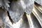 Centrotavola in argento in forma di valva di conchiglia con decoro di frutti e foglie in argento parzialmente dorato, piedi a pere e limoni a tutto tondo (g 1900) (L. cm 40) (difetti)