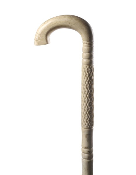 Arte del secolo XIX. Bastone da passeggio in osso inciso con presa ricurva (h. cm 90) (difetti)