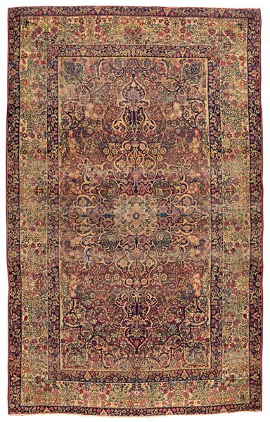 Tappeto Kirman, Persia, fine secolo XIX. Decoro con medaglione floreale su fond