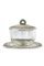 Ciotola con vassoietto e coperchio in argento traforato e inciso a volute e fio