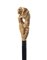 Arte del secolo XIX. Lotto composto da due bastoni da passeggio, fusti in legno spinato ed ebanizzato, uno con presa in avorio scolpito in forma di leone su un ramo, l'altro con presa in corno in forma di scimmia reggisfera assisa (h. cm 90) (difetti)