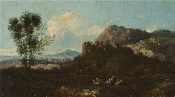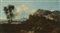 Scuola veneta del secolo XVIII "Paesaggio con figure" olio su tela (cm 24x42)