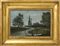 Art of the 18th century. "Fisherman in a landscape", verre peint (23x35 cm) in carved and gilded wood frame (defects)