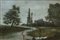 Arte del secolo XVIII. "Pescatore in un paesaggio", verre peint (cm 23x35) in c