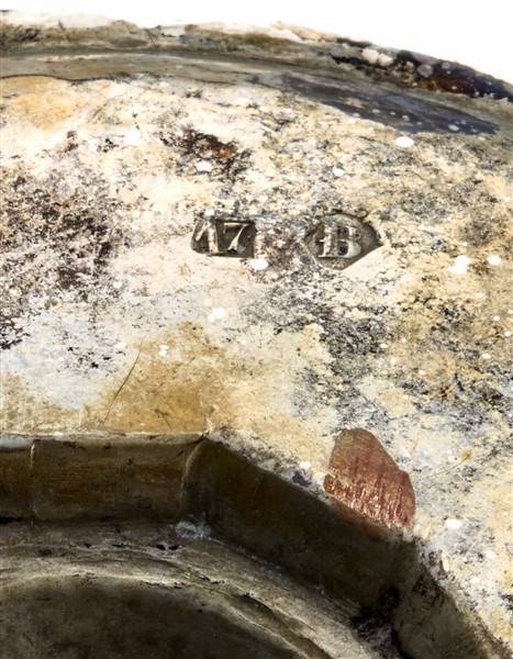 Silver incense burner in the shape of a perforated sphere engraved with stylized motifs and surmounted by a swan. False branch base with leaves resting on a circular tripod base. Argentina 19th/20th century. Marked 17 and B within shield at base (g 300) (h. cm 20) (defects)