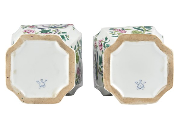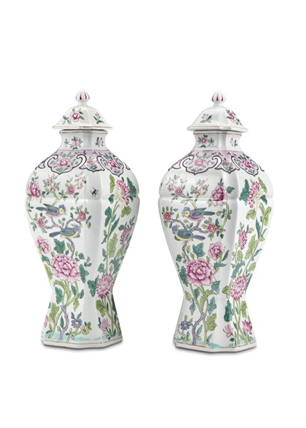 Manifattura di Samson, secolo XIX. Coppia di potiches di gusto orientale con co