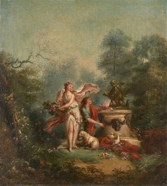 Scuola francese del secolo XVIII "Allegoria dell'Amore" olio su tela (cm 72,5x