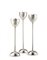Gruppo di tre candelieri in argento in forma di tulipani. Como, argentiere Ronc