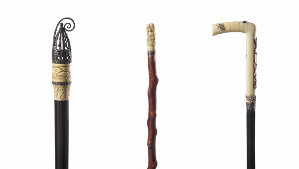 Arte secolo XIX. Lotto composto da tre bastoni da passeggio con prese in avorio