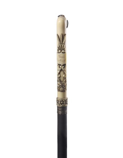 Art of 19th century. Lot composed of three walking sticks with carved ivory handles (h. max cm 91) (defects and breakages)