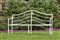 Divano in ferro verniciato bianco con bordure scanalate, piedi ferini (cm 205x108x54) (difetti)