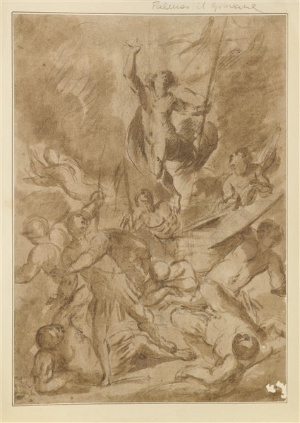 Artista veneto del secolo XVIII "Resurrezione di Cristo" pennello con acquerel