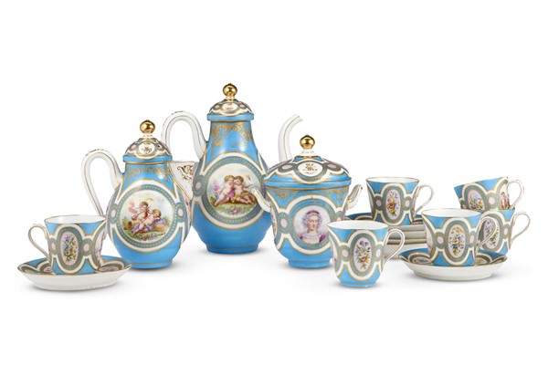 Manifattura francese, nello stile di Sévres. Parte di servizio da caffè in porc