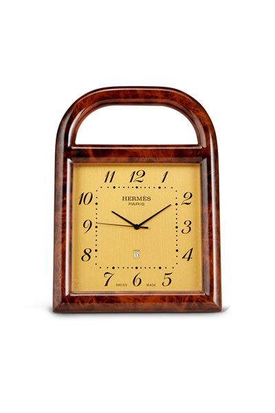 HERMES PARIS Pendoletta da scrivania in metallo dorato e lacca. Quadrante dorat
