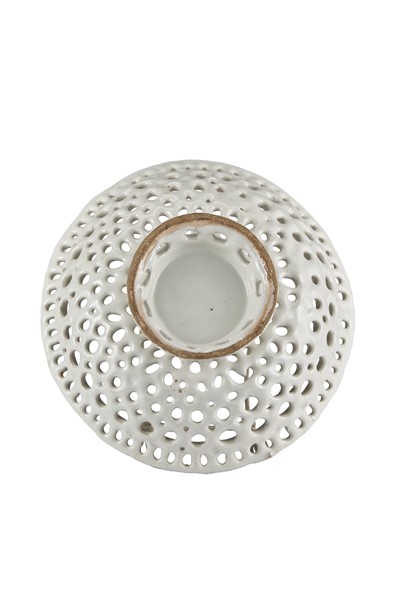 Manifattura di Faenza, fine secolo XVI. Crespina traforata in maiolica bianca d