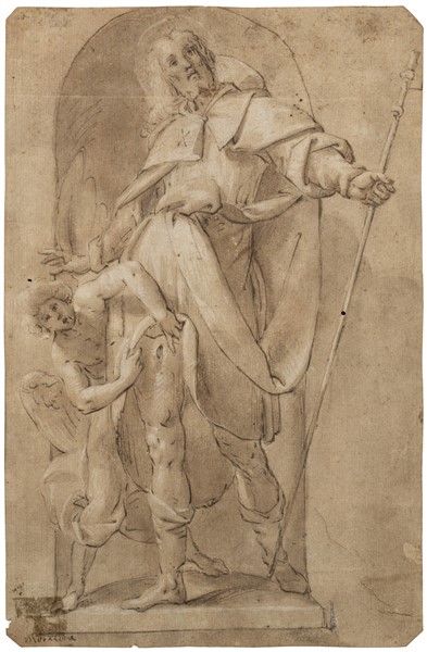 Cerchia di Pier Francesco Mazzucchelli detto "il Morazzone" "San Rocco" penna