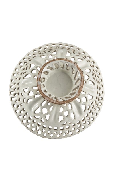Manifattura di Faenza, fine secolo XVI. Crespina in maiolica bianca traforata d