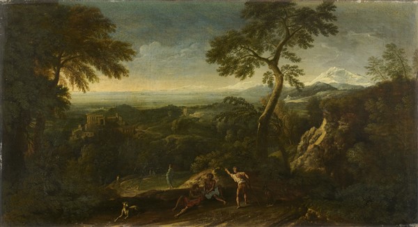 Scuola romana della fine del secolo XVII "Paesaggi con figure" coppia di dipin