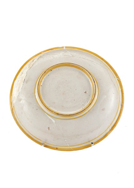 Manufacture of Rimini, second half of the 16th century, probably Garella workshop. Majolica cup painted in polychrome depicting the Gauls who complain to Caesar of the ferocity of Ariovisto (d 23 cm) (restorations)