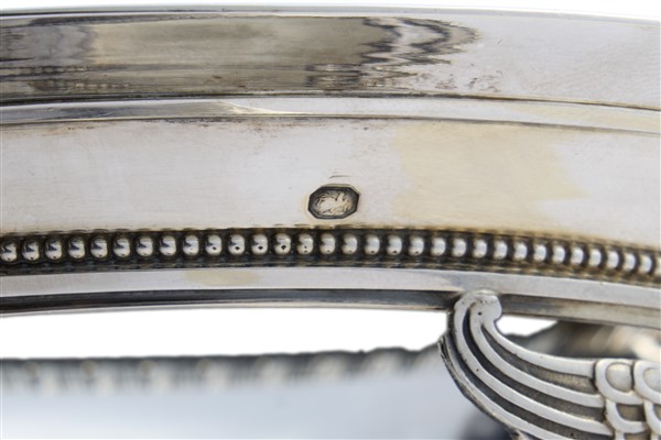Compostiera Impero in argento cesellato, traforato e inciso a coppa biansata e
