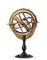 Sfera armillare in cartone pressato e legno. Sostegno in legno ebanizzato e tor