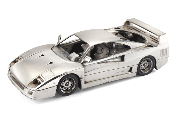 Modello di Ferrari in argento a tutto tondo con parti in plastica argentata (g