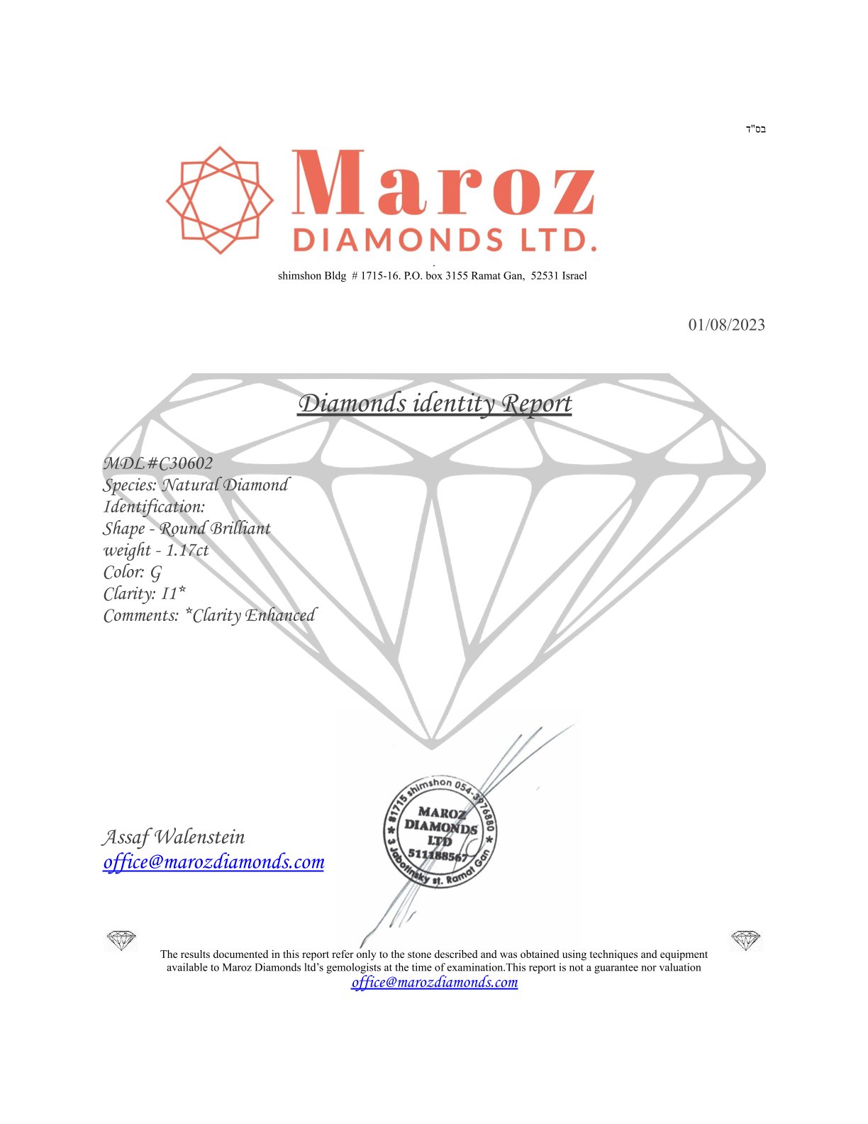 DIAMANTE 3,01 CARATI COLORE K - PUREZZA I2 - TAGLIO BRILLANTE - CERTIFICATO GEMMOLOGICO MAROZ DIAMONDS LTD MEMBRO ISRAEL DIAMOND EXCHANGE - MH30601
