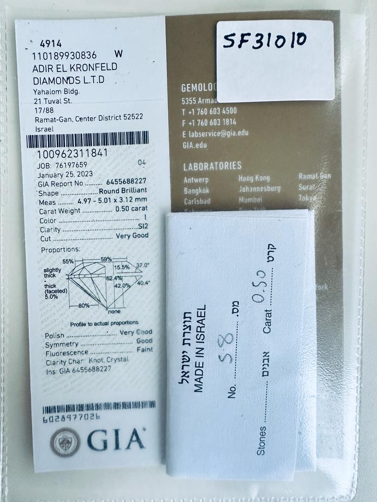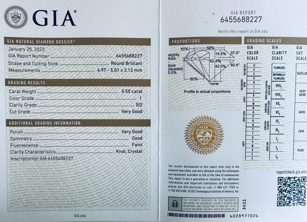 DIAMANTE 0,5 CARATI COLORE I - PUREZZA SI2 - TAGLIO BRILLANTE - CERTIFICATO GIA - PUREZZA SF31010