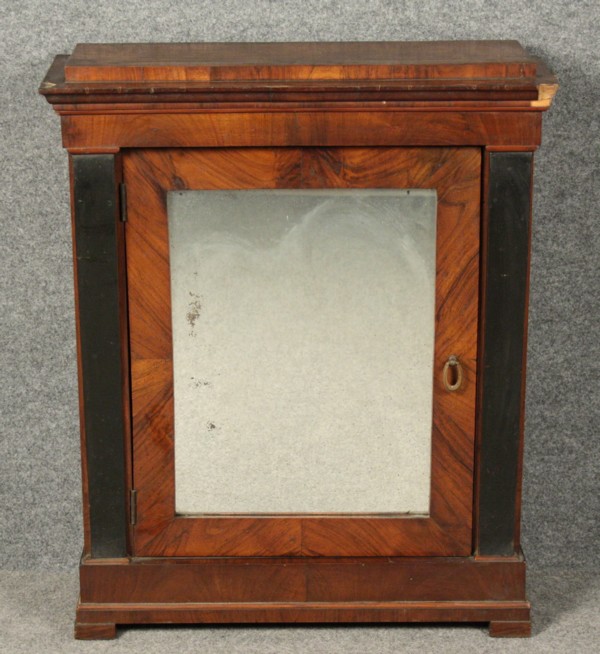 Modellino di armadio in legno di noce con anta a specchio. Periodo Impero. Mis. Lung. cm. 49 Alt. cm. 59 Prof. cm. 18 ca.
