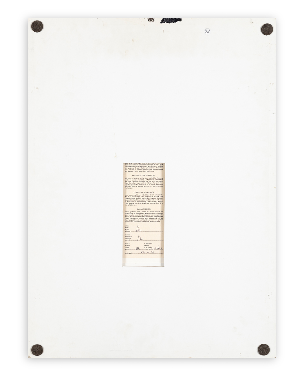 Firma e numerazione (Esemplare 29/120) a matita al fronte