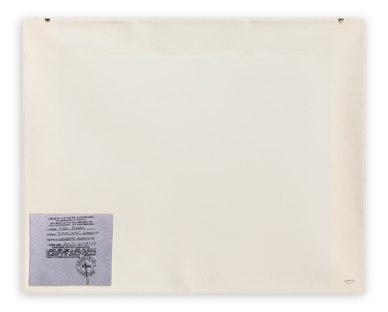 Certificato di garanzia a cura della Grafica d'Arte Lombardi (RM) al retro