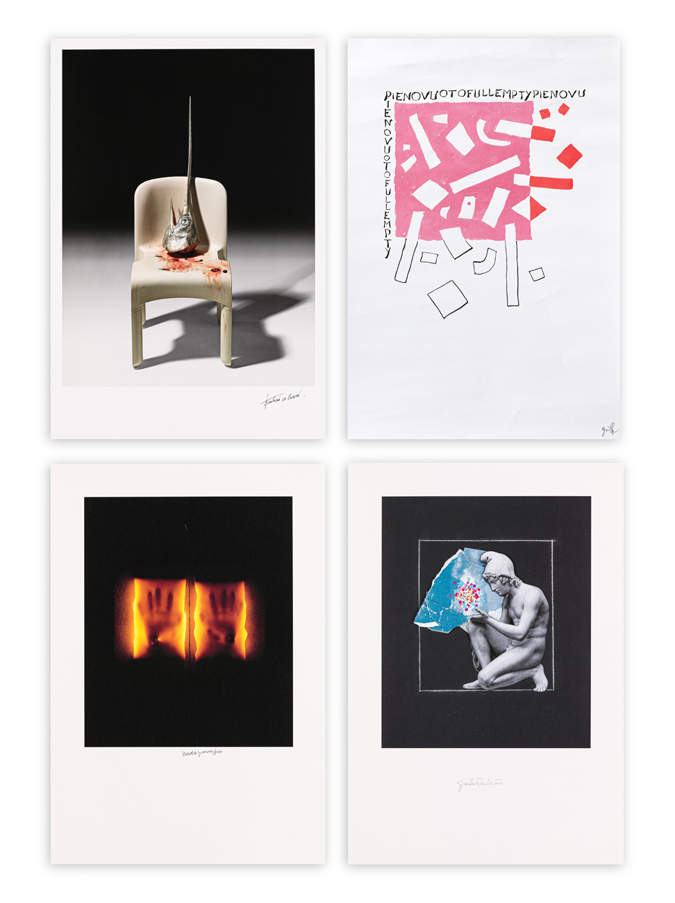 4 riproduzioni in stampa litografica di Giulio Paolini, Claudio Parmiggiani, Bertozzi & Casoni, Giorgio Griffa