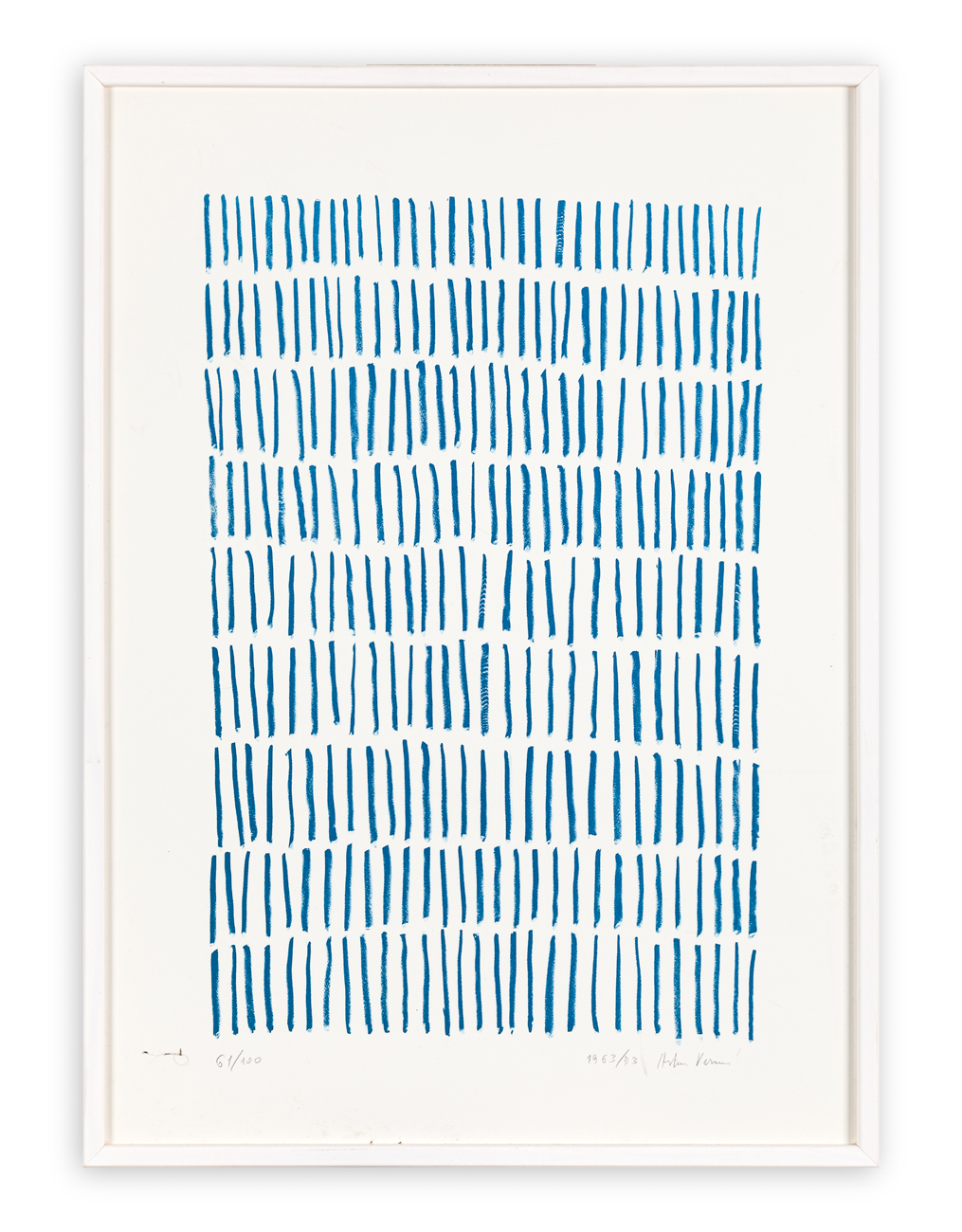 Firma, datazione e numerazione (Esemplare 61/100) a matita al fronte