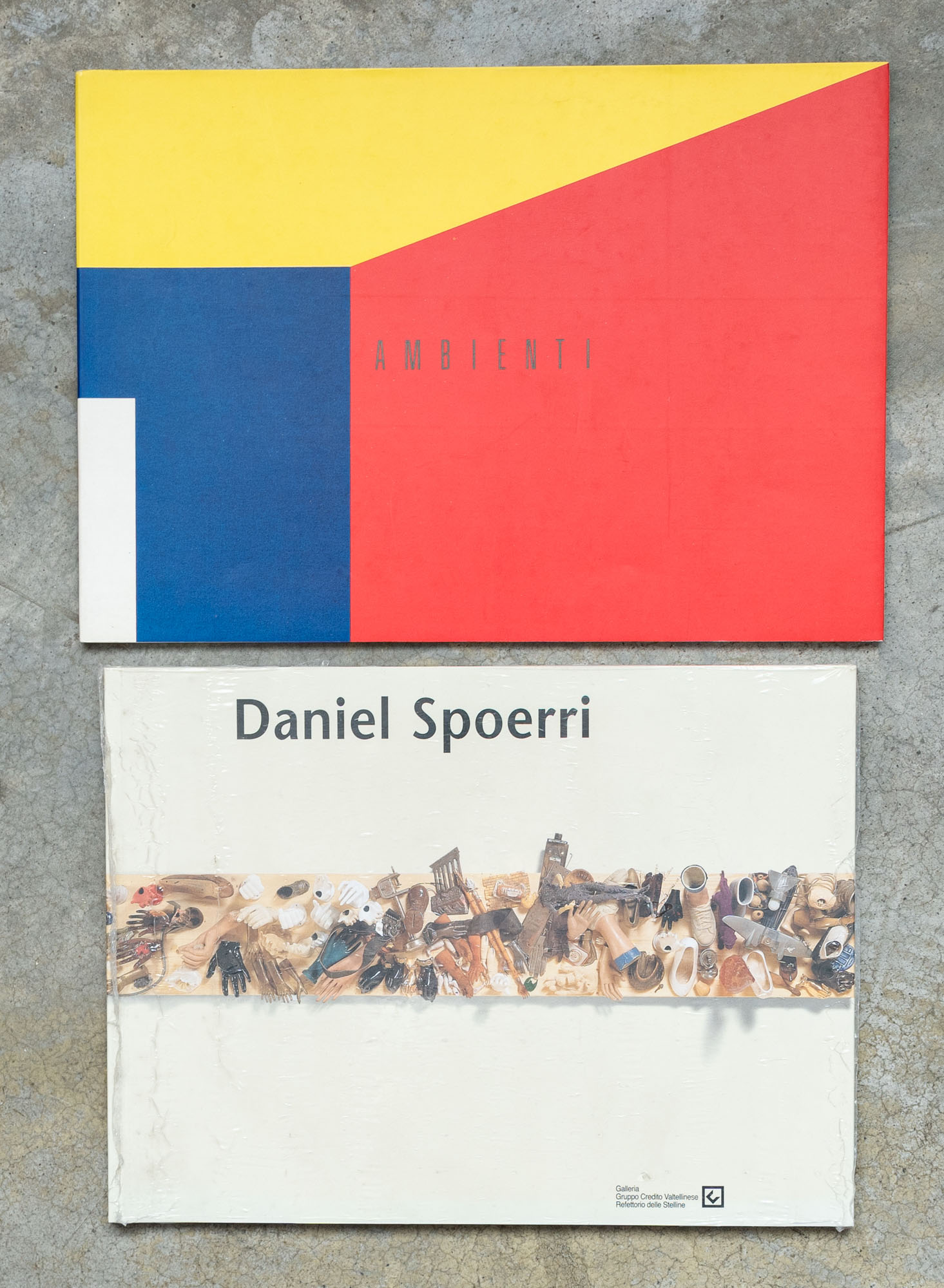 LOTTO MULTIPLOLotto di due cataloghiAmbienti1991Catalogo monografico illustrato edito in occasione della mostra tenutasi presso il Refettorio delle Stelline, Milano (1991)21 x 30 cmEdizione Galleria Credito ValtellinesePagine 45DifettiDaniel Spoerri - La catena genetica del mercato delle pulci. Una retrospettiva2000Catalogo illustrato21 x 28 cmSilvana EditorialePagine 60Nuovo con cellofan