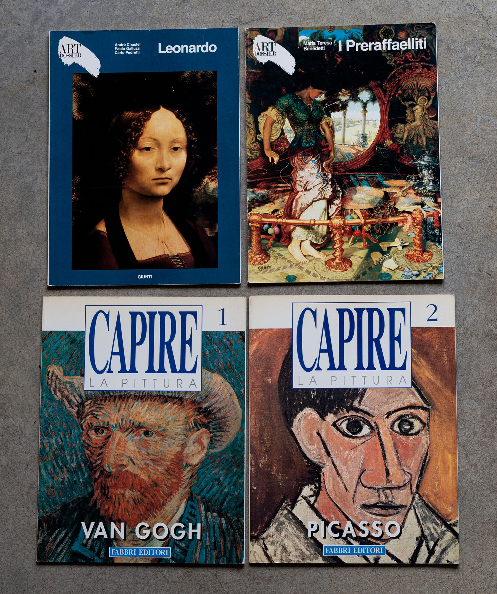 LOTTO MULTIPLOLotto di quattro riviste 'Art Dossier' e 'Capire la pittura'Leonardo - I preraffaelliti - Picasso - Van GoghDue riviste misurano 28,5 x 21 cmDue riviste misurano 28,5 x 22 cmDifetti