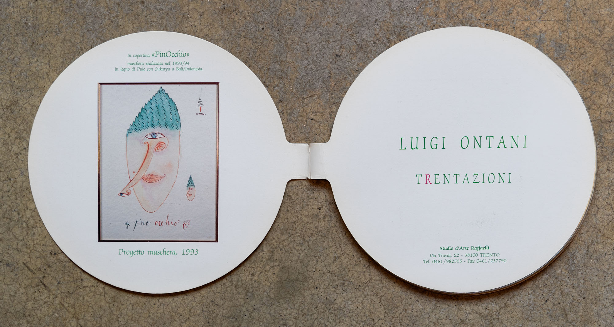 LUIGI ONTANI(1943)Trentazioni - Tormento a Trento1994Catalogo illustrato edito in occasione della mostra tenutasi presso lo Studio d'Arte Raffaelli, Trento (1994)Diametro 17 cmEdizione della galleriaSenza numero di pagineDifetti