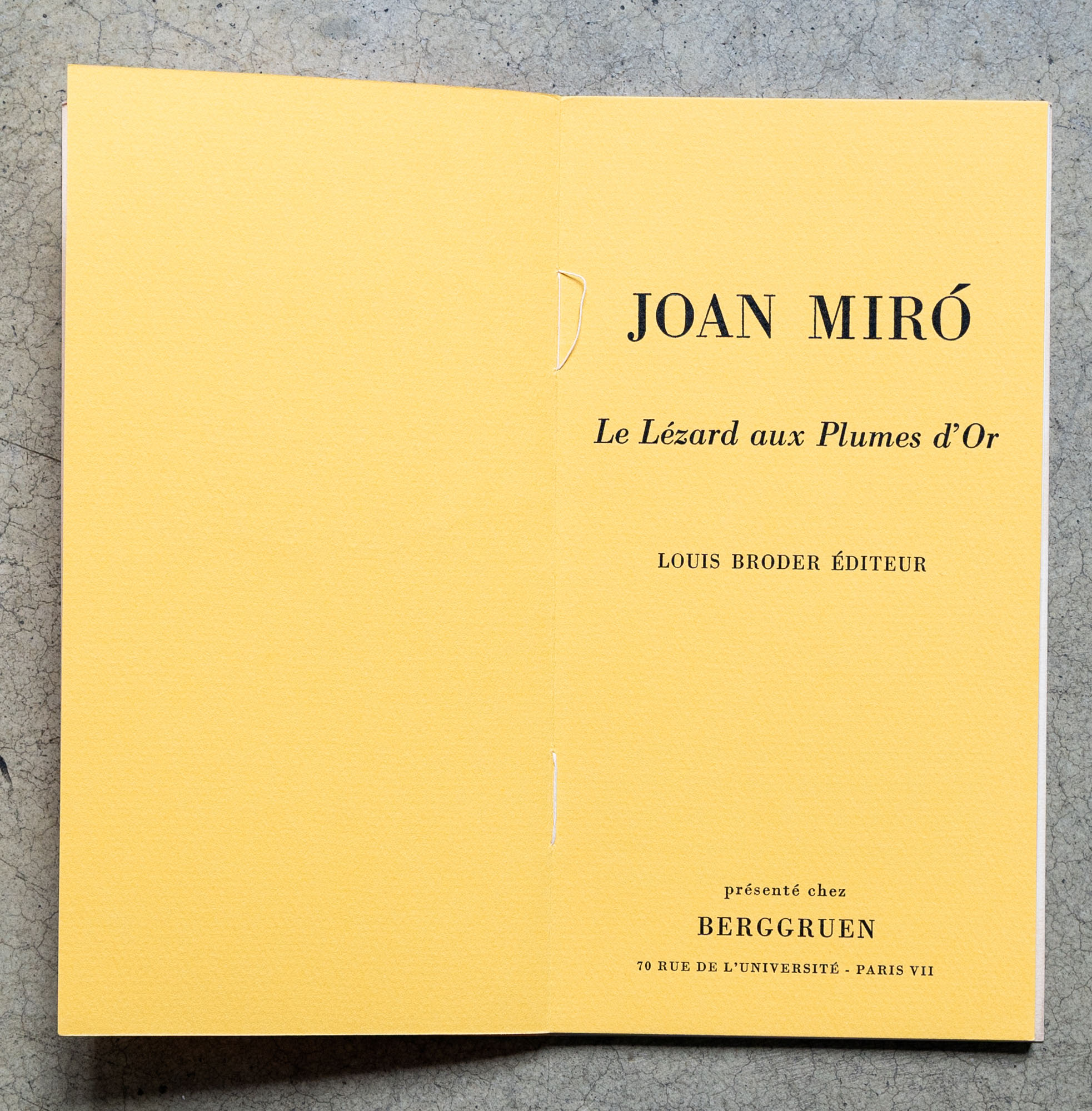 JOAN MIRÒ(1893 - 1983)Le lézard aux plumes d'or1971Catalogo illustrato edito in occasione della mostra tenutasi presso la Galerie Berggruen, Parigi (23 novembre - 31 dicembre 1971)22 x 11,5 cmLouis Broder EditeurSenza numero di pagineDifetti