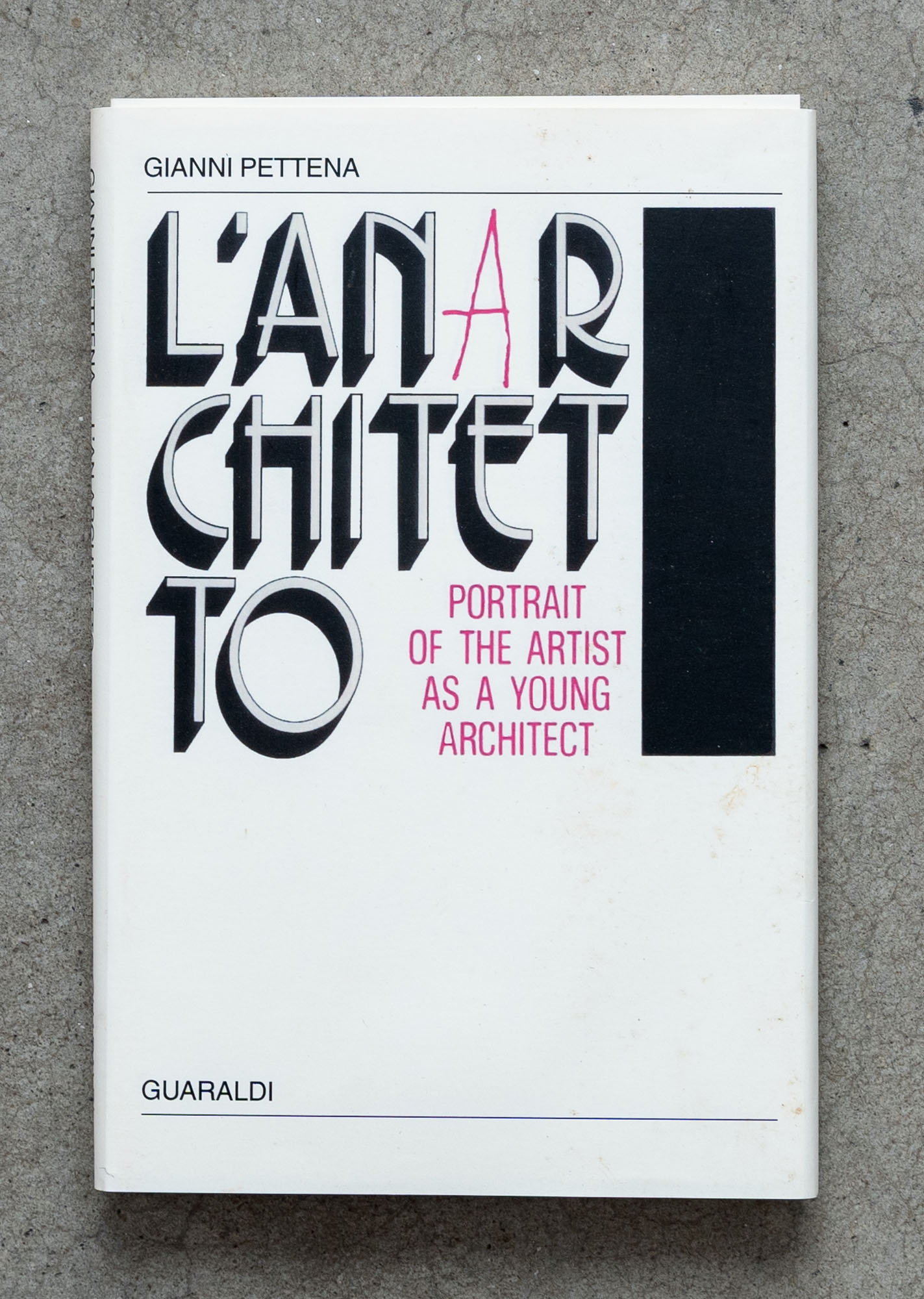 GIANNI PETTENA(1940)L'anarchitetto. Portrait of the artist as a young architect2010Catalogo in due volumi realizzato in 450 esemplari di cui 50 numerati e firmati dall'artista in occasione della mostra tenutasi presso il Centro per l'arte contemporanea Luigi Pecci, Prato (20 marzo - 20 giugno 2010)21 x 13,5 cmEdizione GuaraldiDifetti